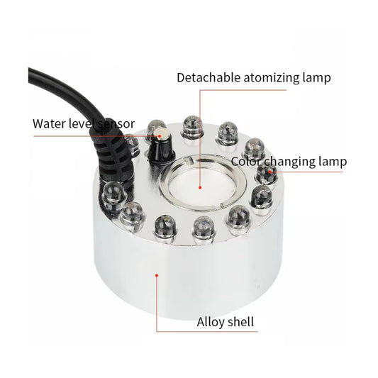 12 LED Mist Maker Colorful LED Mist Maker With 24V Adapter Humidifier Mist Maker Fogger Ultrasonic Mist Maker With 16/20mm Nozzle Perfect For Indoor and Outdoor Use - RS7024