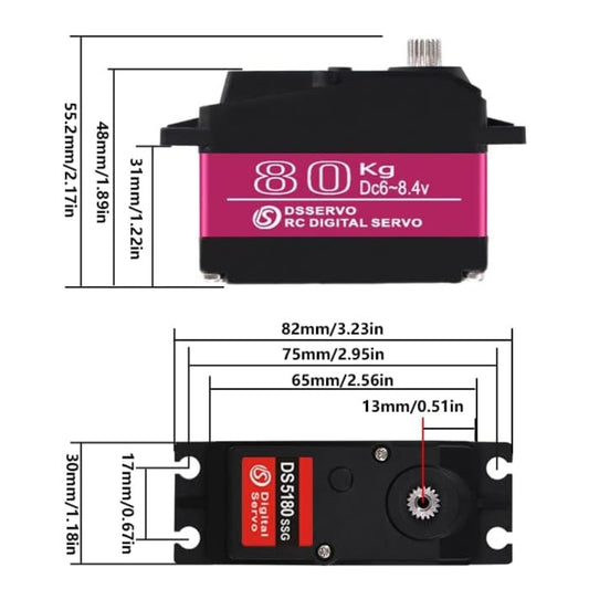 DSServo DS5160SSG 60kg Waterproof Digital Servo 180°, 270° (Optional) Degree Rotation 8.4V High Voltage Metal Gear Servo High Torque RC Servo Perfect For 1/5 Scale RC Cars and Trucks