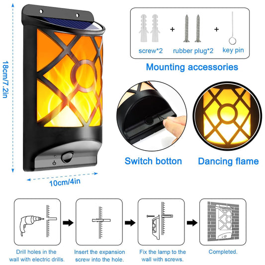 Flickering Flame Solar Wall Light Outdoor Solar Lights, Fire Effect 66 LED Auto On/Off Solar Powered Wall Mounted Torch Light for Fence, Patio, Deck, Landscape Decoration Pack Of 1 - RS5855