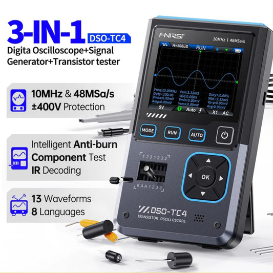 FNIRSI DSO-TC4 3-in-1 Multi-Function Tester 10MHz Digital Oscilloscope 48MSa/s Transistor Tester & Signal Generator