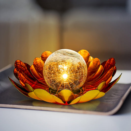 Gold Flower Solar Light Outdoor Decorations, Garden Glow Solar Lights With Metal Petal Waterproof, Glass Crackle Solar Powered Ball Decor Light For Tabletop, Ground, Walkway Yard - RS6154