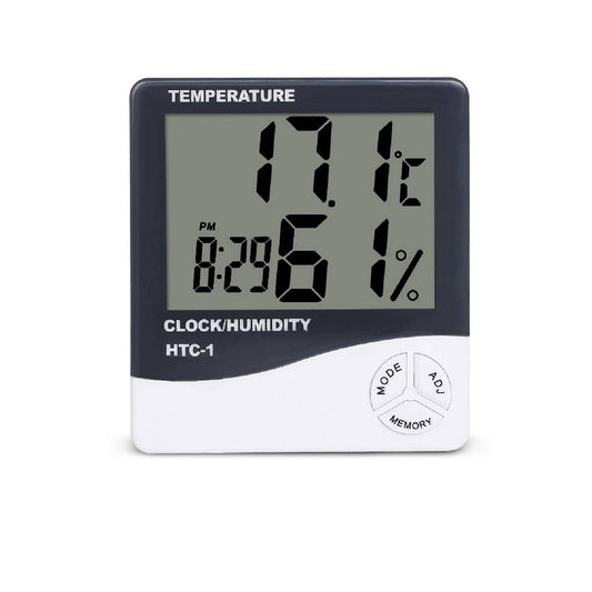 HTC-1 Clock with Thermometer High Precision Large Screen Electronic Indoor Temperature, Humidity Thermometer With Clock Alarm - RS5932