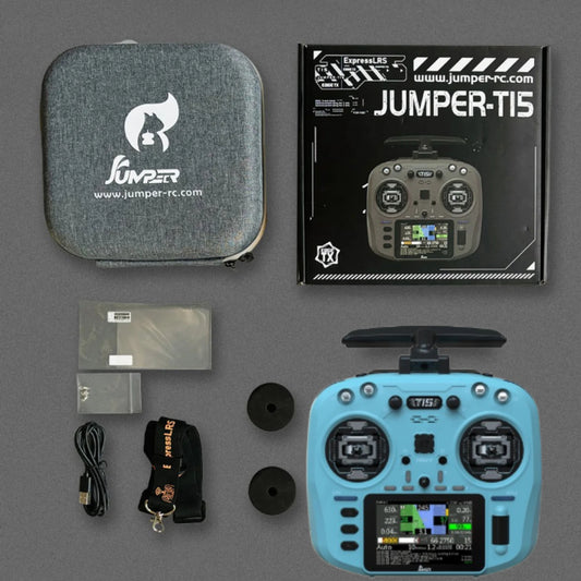 Jumper T15 Advanced ELRS 2.4GHz Radio Controller Precision Hall Gimbals, 3.5-inch Touchscreen, EdgeTX Compatible for FPV Drone Piloting - Cyan Blue - RS8560