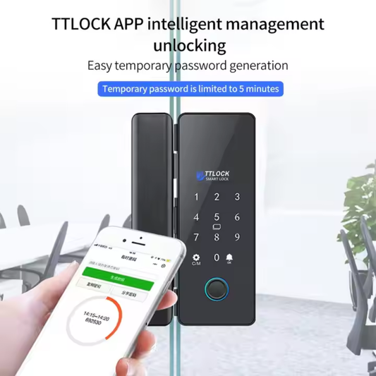K190 Smart Bluetooth Fingerprint Glass Door Lock System Secure Biometric Access Controller With TTLock Mobile App, Passcode, RFID Card