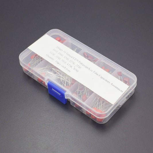 100 Pieces 10 Values CBB Polypropylene Capacitor Assortment Kit 10nF-470nF Metalized Film Capacitor with Storage Box - RS1849