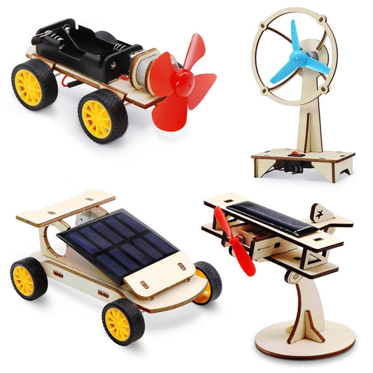 DIY Wooden 4-in-1 STEM Kit for Kids, Wooden Solar Power Motor Kit for Boys to Build, STEM Electric Projects Engineering Set for Girls, Woodworking Gift Toys - RS6163