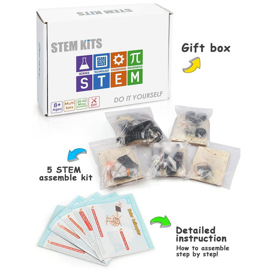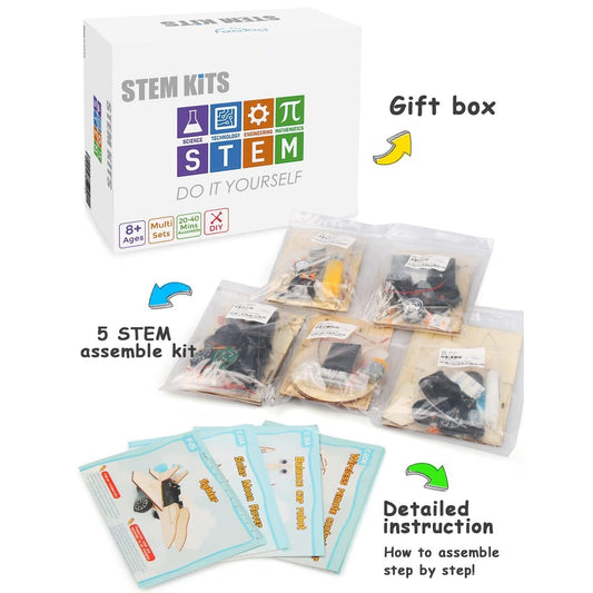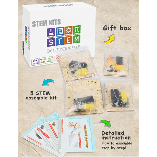 DIY Wooden 5-in-1 STEM Kit for Kids 8-12 Years Educational Sclding Toys with Wooience Experiment and Build Puzzles Perfect Gift for Boys and Girls - RS6165