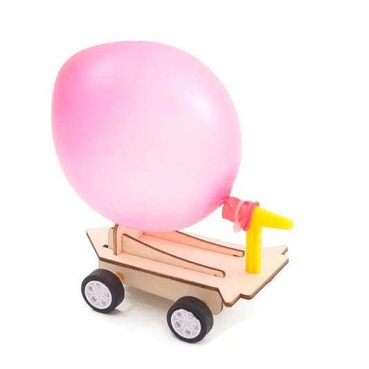 DIY Wooden Balloon Recoil Car STEM Kit Hands-On Science Wooden Balloon Car Kit Interesting DIY Toy Car Building Model Craft Learning Education Stem Gift For Old Children 6-12 Years - RS6458