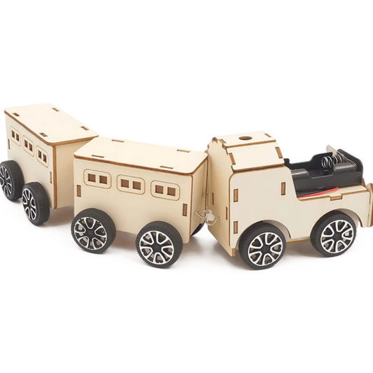 DIY Wooden Electric Train STEM Kit Mini Wooden Jigsaw Train Kit Build Your Own Train Puzzle Motorized Train Puzzle Fun Science Physic Project Experiment For School Children - RS6460