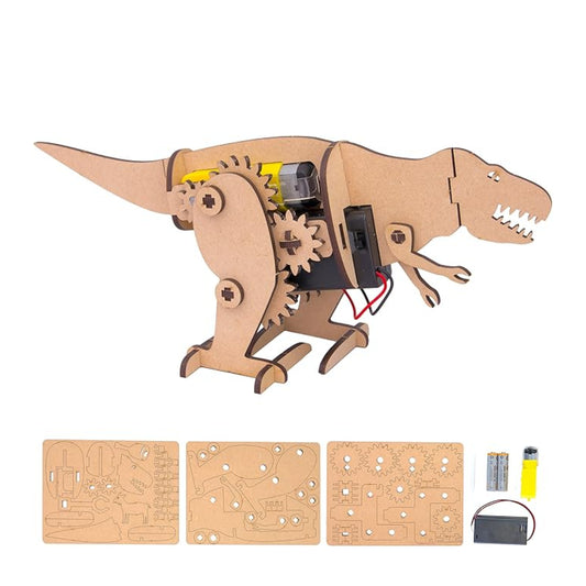 DIY Motorized Dino STEM Kit Dino Bot - DIY Motorized Robot Craft Kit Made From Laser Cut Wood - Engineering Toy For Kids And Adults - RS5846