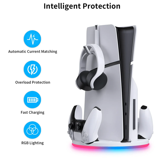 JYS Multi-Functional Vertical PS5 Charging Stand With DualSense Controller Fast Charging Dock & 12-Game Storage Rack For Disc & Digital Editions - RS8580