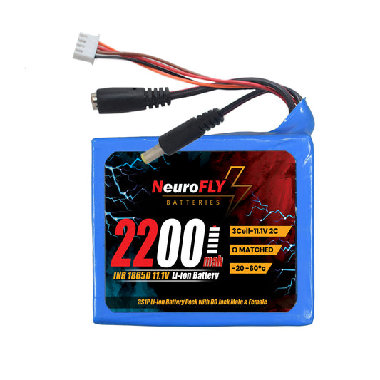 NeuroFLY 11.1V 2200mAh 3S 18650 Li-Ion Battery Pack 2C 3S1P Li-Ion Battery with Male & Female DC Jack and 4 Pin JST Connector - RS9349