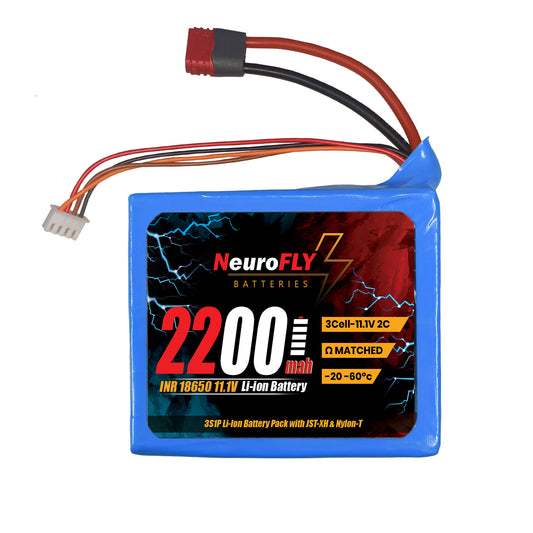 NeuroFLY 11.1V 2200mAh 3S 18650 Li-Ion Battery Pack 2C 3S1P Li-Ion Battery with Amass Nylon T Plug and 4 Pin JST-XH Connector - RS9351