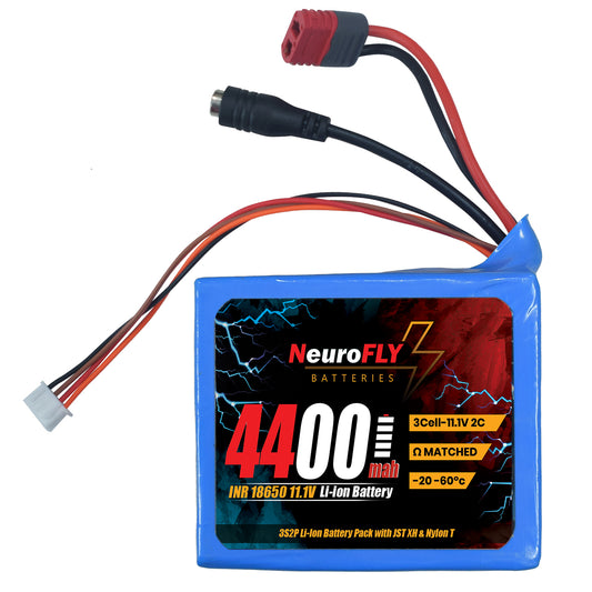 NeuroFLY 11.1V 4400mAh 18650 Li-Ion Battery Pack 2C 3S2P Li-Ion Battery with Female DC Jack, Amass Nylon T and 4-Pin JST Connector - RS9352