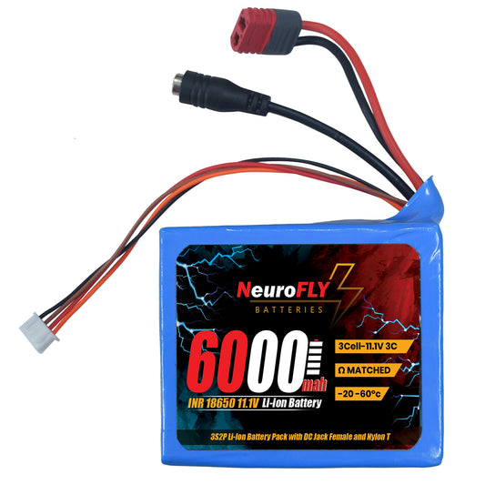 NeuroFLY 11.1V 6000mAh 18650 Li-Ion Battery Pack 3C 3S2P Li-Ion Battery with Female DC Jack, Amass Nylon T and 4-Pin JST Connector - RS9353