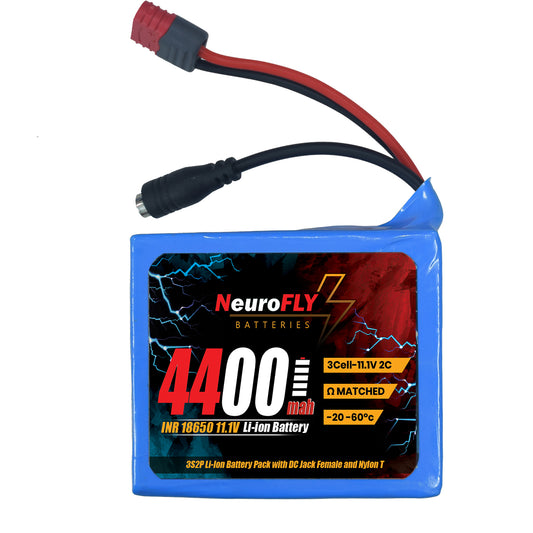 NeuroFLY 11.1V 4400mAh 18650 Li-Ion Battery Pack 2C 3S2P Li-Ion Battery with Female DC Jack and Amass Nylon T Connector - RS9354