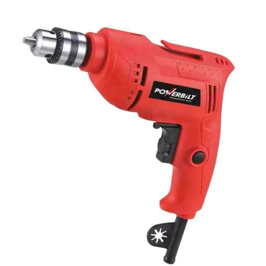 POWER BILT 600W 10mm Red & Black Power Drill Machine High-Performance Electric Drill For Home DIY & Professional Use - RS7561