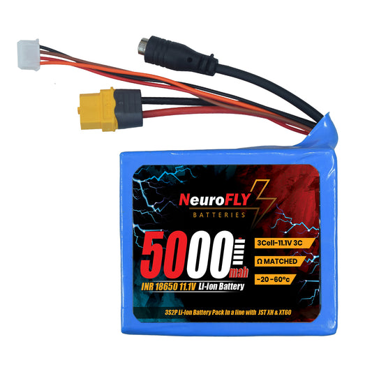 NeuroFLY 11.1V 5000mAh 18650 Li-Ion Battery Pack 3C 3S2P Li-Ion Battery with Female DC Jack, Amass XT-60 and 4-pin JST Connector - RS9355