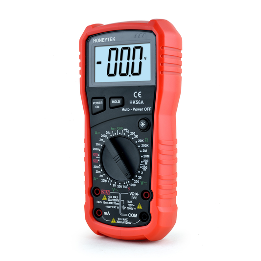 Honeytek HK56A Digital Multimeter Versatile Handheld Tester With Auto-Ranging Diode Continuity & Data Hold For Home Automotive & DIY Electrical Work