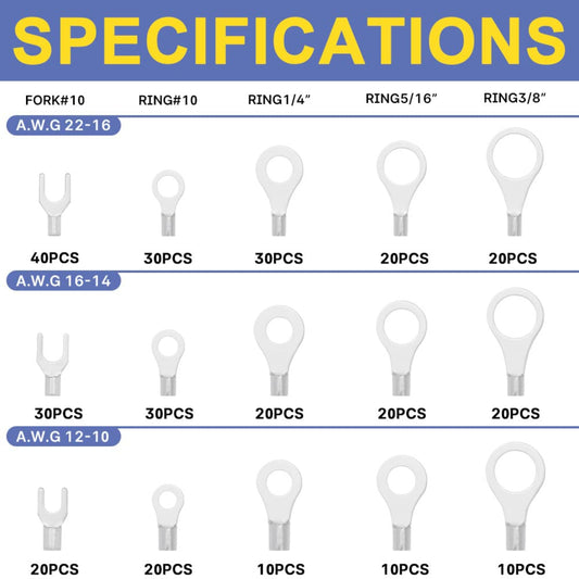 330PCS Wire Connectors Kit Non-Insulated Wire Connectors Kit AWG 22-10 Electrical Wire Crimp Connectors - RS6196