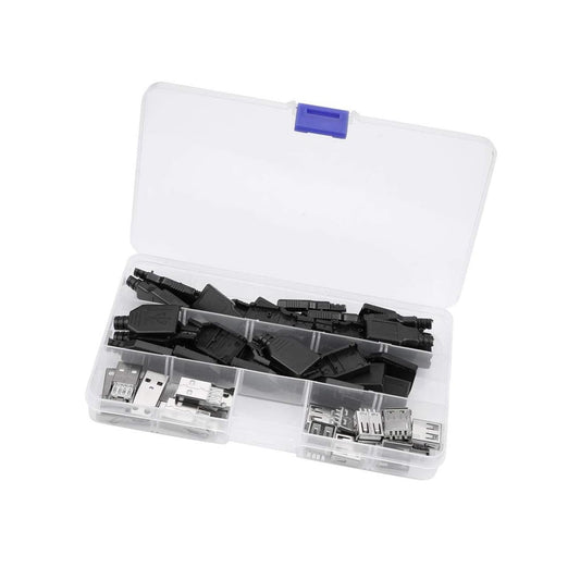 20 Pairs Premium USB Connector with Shell Type-A Male(10Pairs) and Type-A A 2.0 Female (10Pairs) 4 Pin Plug Connectors Assorted USB Connector Kit - RS1139