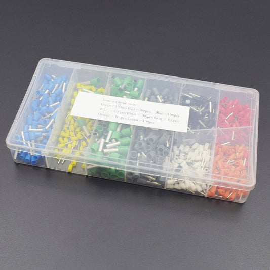 800-Piece Ferrule Wire Copper Crimp Connector Kit (AWG 22–10) — Insulated End Terminals - RS1846