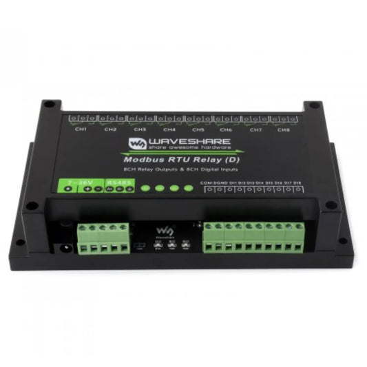 Waveshare 8-CH Modbus RTU Relay Module (D) Industrial Automation Relay Module with Digital Input and RS485 Interface, Wide 7-36V Power Supply for PLC Control