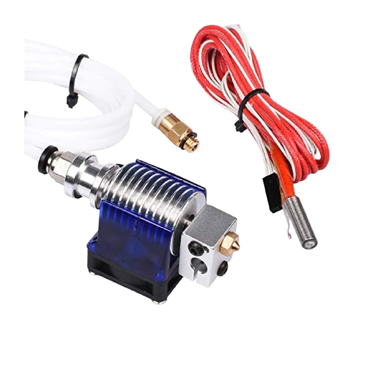 This 1.75mm Bowden Extrude kit contains the old thermistor, heater block, sleeving, cooling fan with holder. The 3D Printer Extruder v6 HotEnd allows you to print a wide variety of materials, from soft and flexible to sturdy and strong. The v6 has cut back on a bunch of bulk.