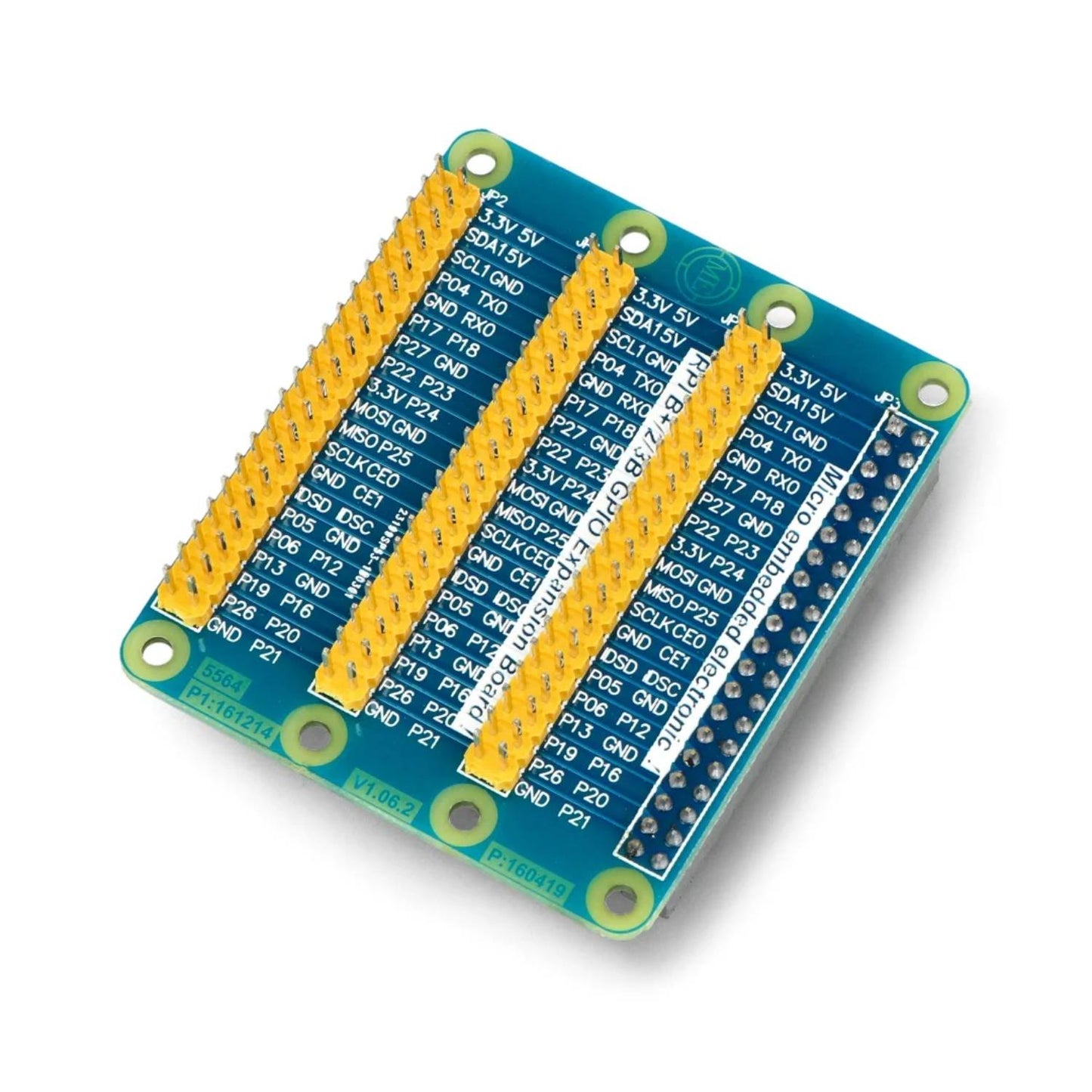 1-to-3 Raspberry Pi GPIO Expansion Board provides the connection of the three modules to each of the GPIO pins of the Raspberry Pi. It has 3 rows of gold pin connectors, 40 pieces each (pitch of 2.54 mm). Each row consists of double straps, the same parallel connected connectors GPIO of the minicomputer.