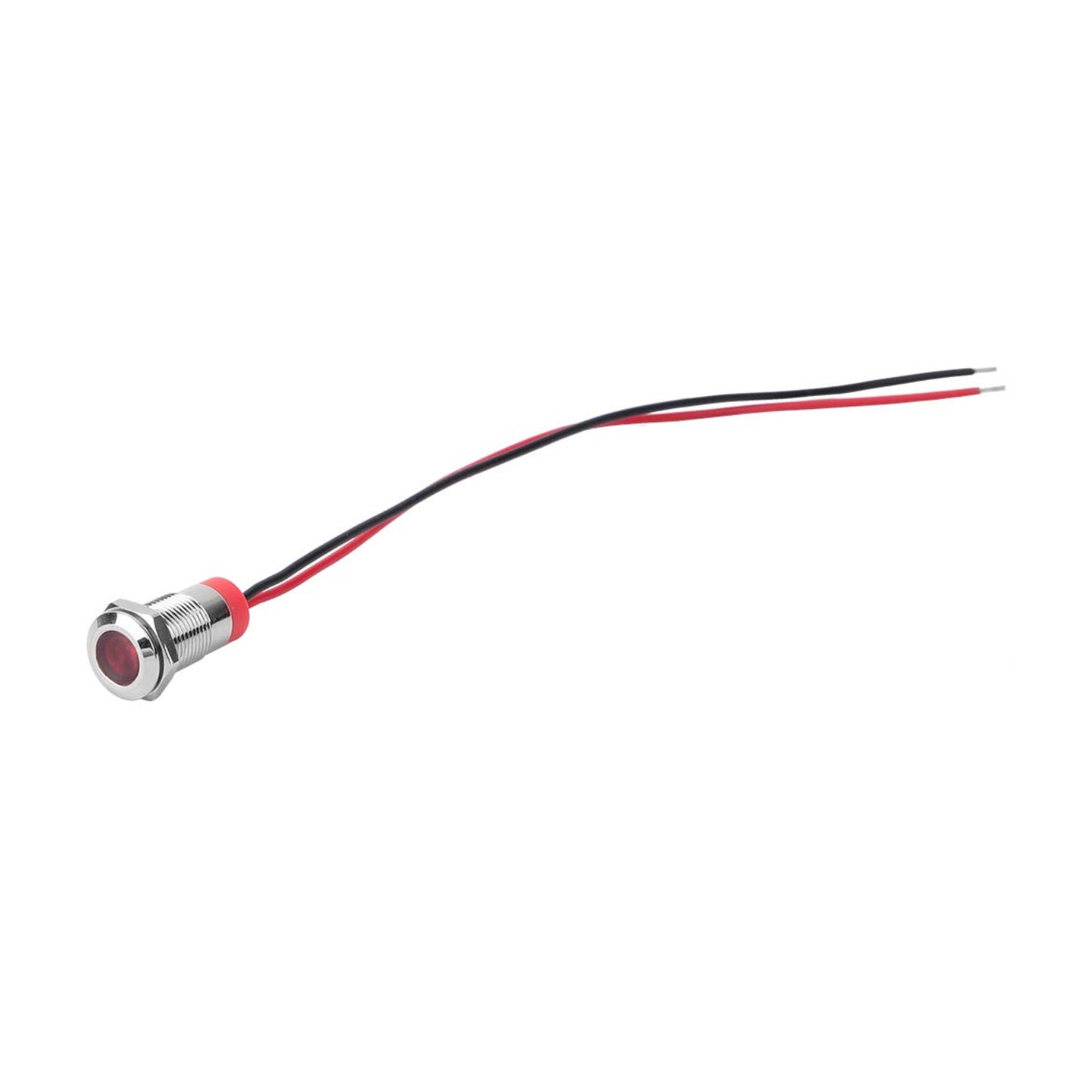 1 x 10-24V 10mm LED Metal Indicator Light With 15cm Cable - RED