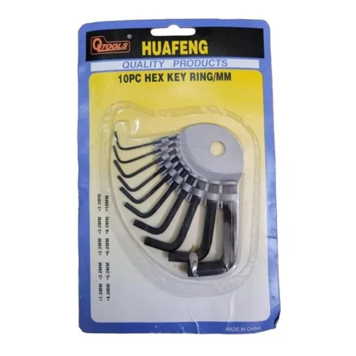 The 10-in-1 Metric Combination Hexagonal Key Allen Wrench set is made of high alloy steel for strength and lifelong durability. Each hex key is held in a type of key-ring holder to keep organized and to quickly find the correct size required. This comes in 10 different sizes including 1.5mm 2mm 2.5mm 3mm 3.5mm 4mm 5mm 6mm 8mm 10mm.