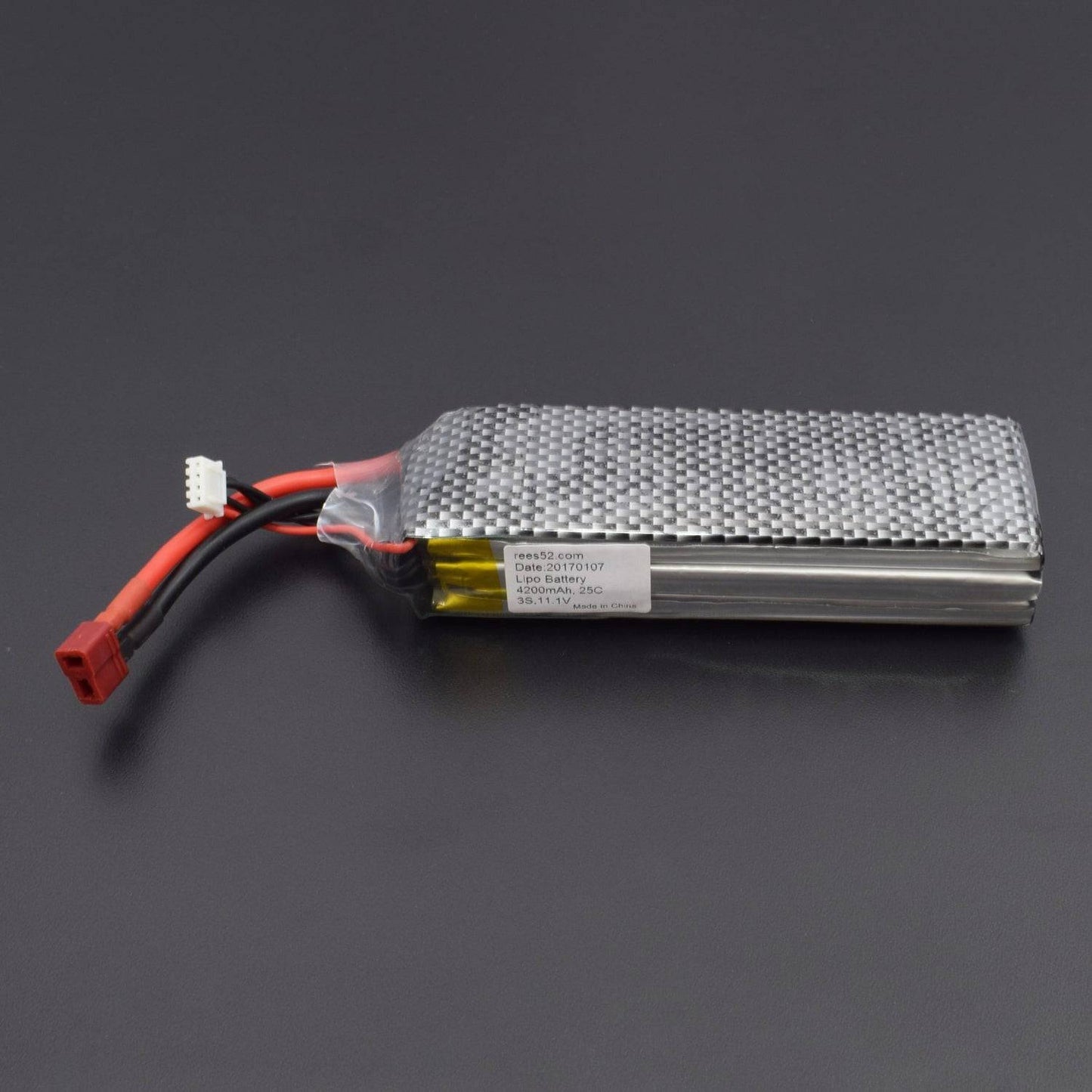 11.1V 4200Mah Lipo Battery is a rechargeable battery which uses Lithium Ion Technology. This 11.1V 4200Mah Lipo Battery pack is specifically manufactured to power quadcopters and multi-rotors. It is a 3 Cell 2200 mAh 25C battery pack that is suitable to power standard-size quadcopters. It delivers full-rated power and offers great performance and flight times. It comes with a standard high-discharge battery connector and a balance plug.