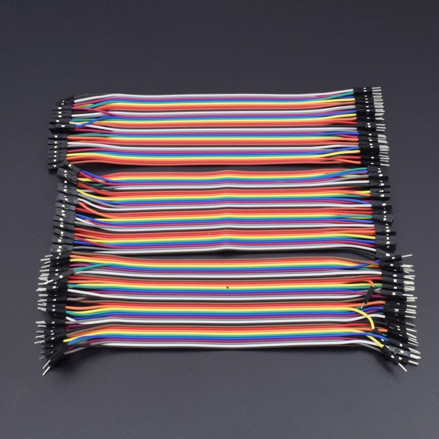 Jumper wires are wires that have connector pins at each end, allowing them to be used to connect two points to each other without soldering. Jumper wires are typically used with breadboards and other prototyping tools in order to make it easy to change a circuit as needed.