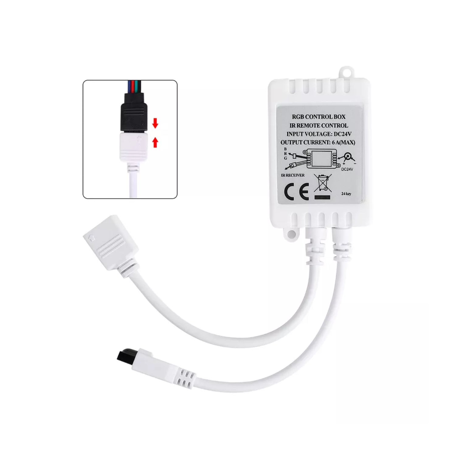 12V 5050 RGB LED Strip Controller box with 24 Key IR Remote Control Are you searching for a good Quality RGB Strip driver? Here you can end your search. This 12V 5050 RGB LED Strip Controller box with 24 Key IR Remote Control out of the box will serve the purpose.