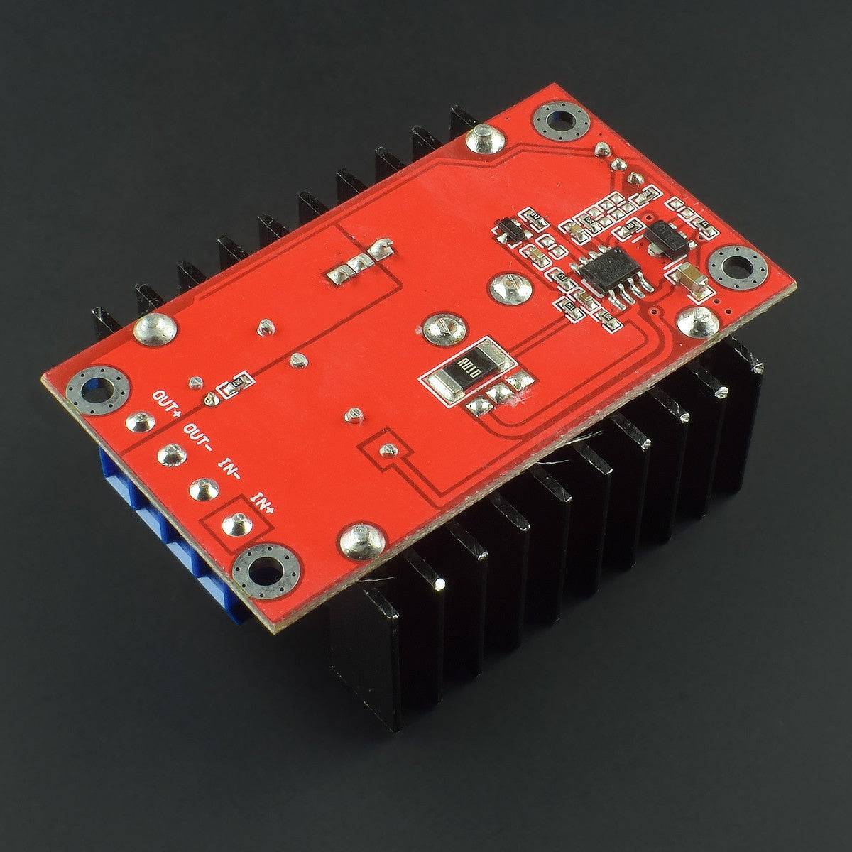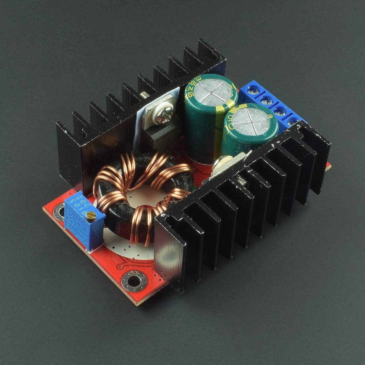 This versatile DC-DC boost power supply/converter module steps up any input voltage from 10V to 32V to any output voltage from 12V to 35V at up to 150W output power and 6A current. This 150W DC-DC Boost Converter 10-32V to 12-35V 6A Step-Up Adjustable Power Supply is well into the heavy-duty end of the spectrum @ 150W; as you can tell by the huge toroidal inductor and dual heatsinks. It is especially useful for automotive 12V applications, where standard 12V battery power can be boosted to 19V for use as a laptop computer power supply, or to 18V or 24V for other applications requiring higher voltages.