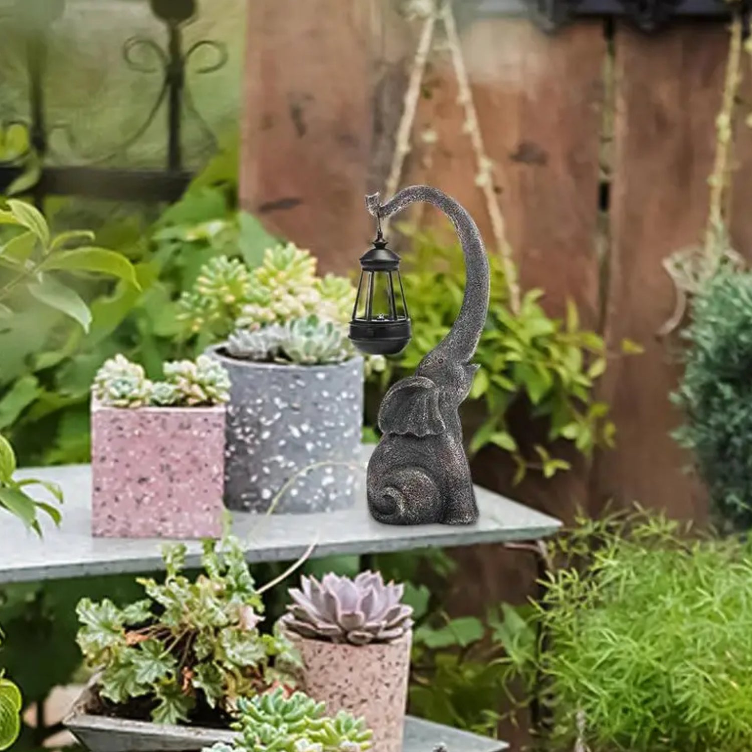 Solar Elephant Sculpture LED Light outdoor garden decor and sweet garden ornaments is the perfect addition to any animal-lover's fairy garden and will add a charming touch to wherever it is placed. Finished in a natural effect to be lifelike. It is an ideal gift for family, friends.