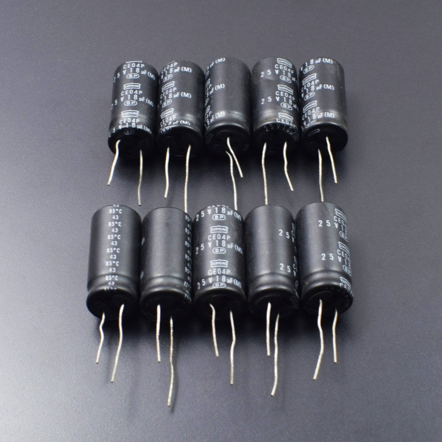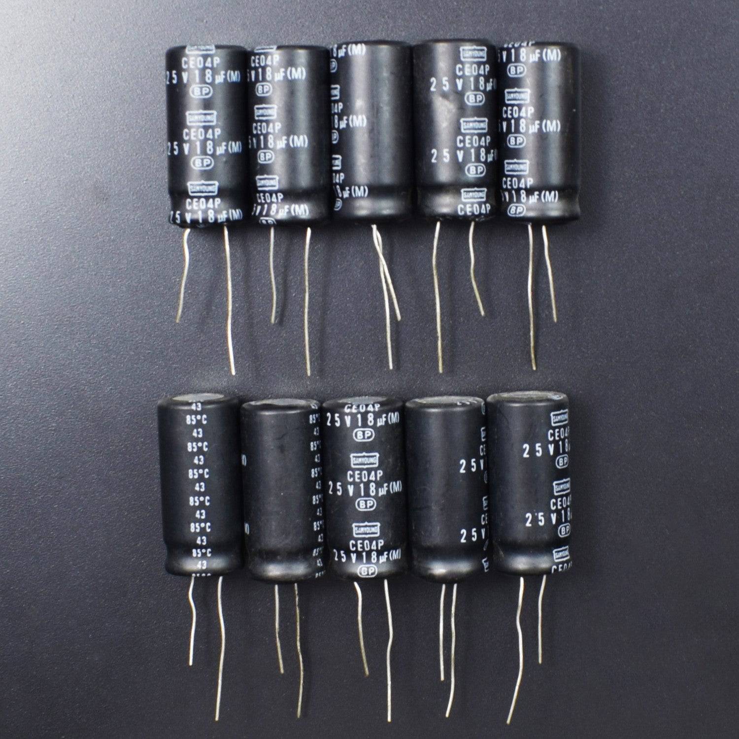 5 x 18uF 25V Radial Electrolytic Capacitor, 105°C