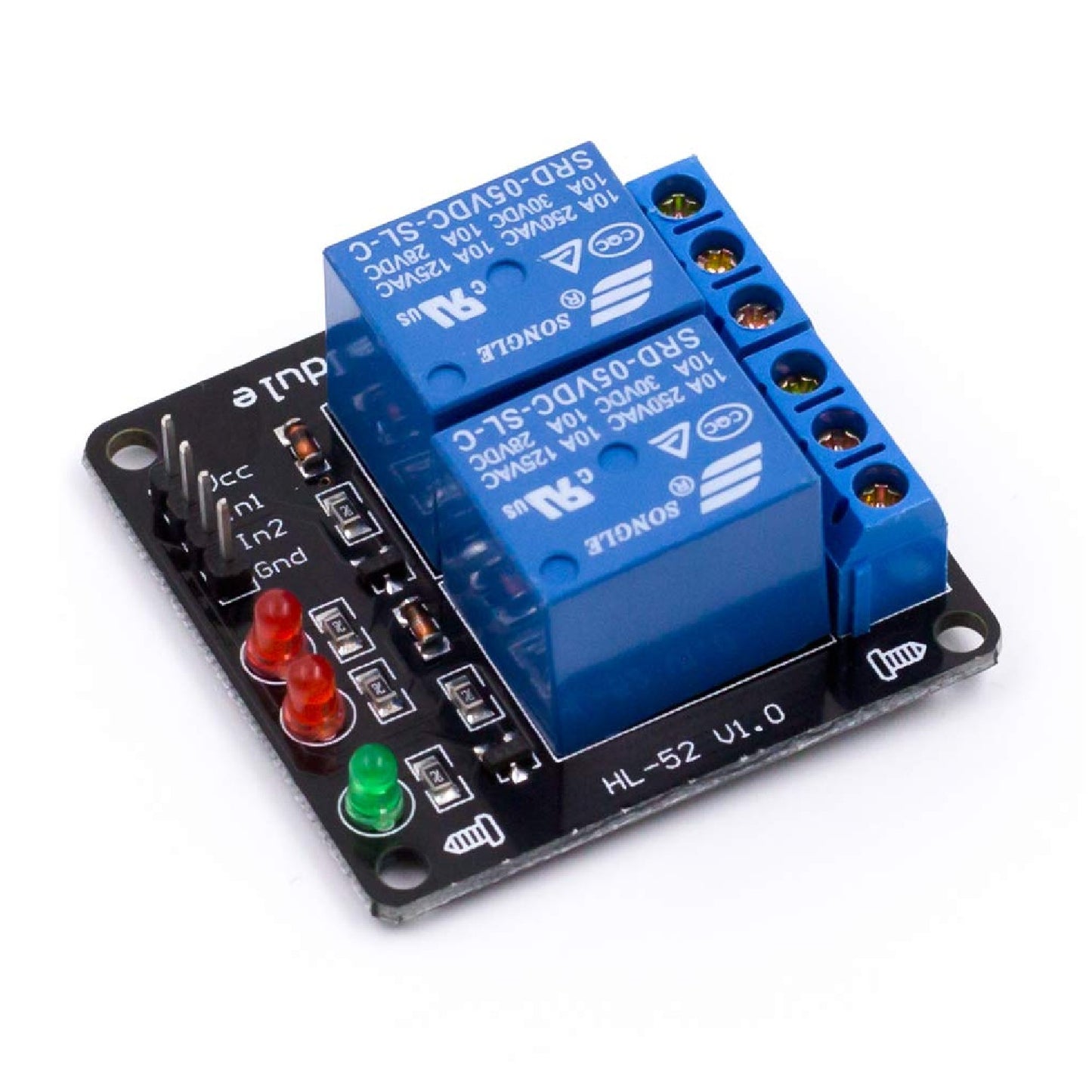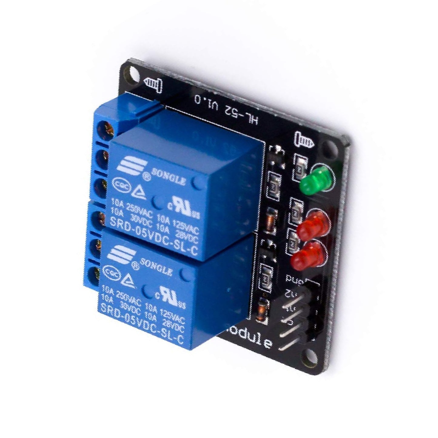 This 5V 10A 2-Channel Relay Module simplifies high-current device control with your microcontroller. Each of its two channels can handle up to 10A, making it perfect for switching lights, motors, solenoids, and other power-hungry loads. Its design without optocouplers allows for direct control from your microcontroller's 5V output, simplifying your circuit and minimizing response time. The module's built-in transistor amplifier ensures reliable switching directly from your microcontroller's digital pins, eliminating the need for external driver circuitry. Clear visual feedback is provided by an LED indicator on each channel, illuminating when the relay is active.