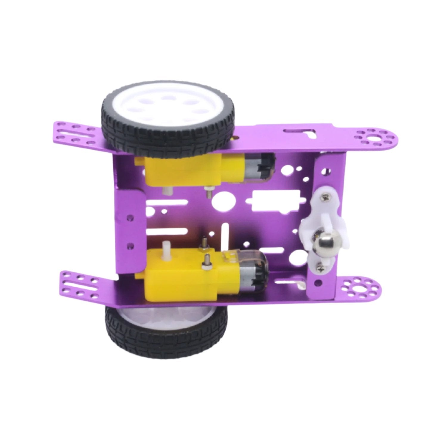 The Purple Aluminum Robot includes two 3-6V gear motors, two wheels, a ball caster wheel, and all of the hardware to assemble it.