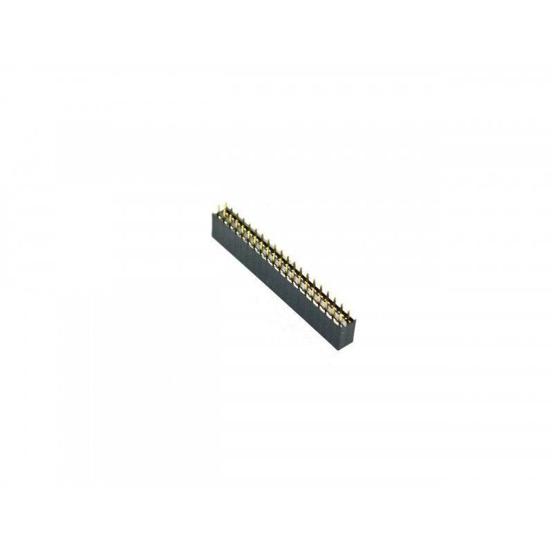 It is a 2.54mm 2x20 Pin Female Double Row Header Strip. It has two rows of 20 pins each. Ideal for through-hole mounting, where space is a constraint.