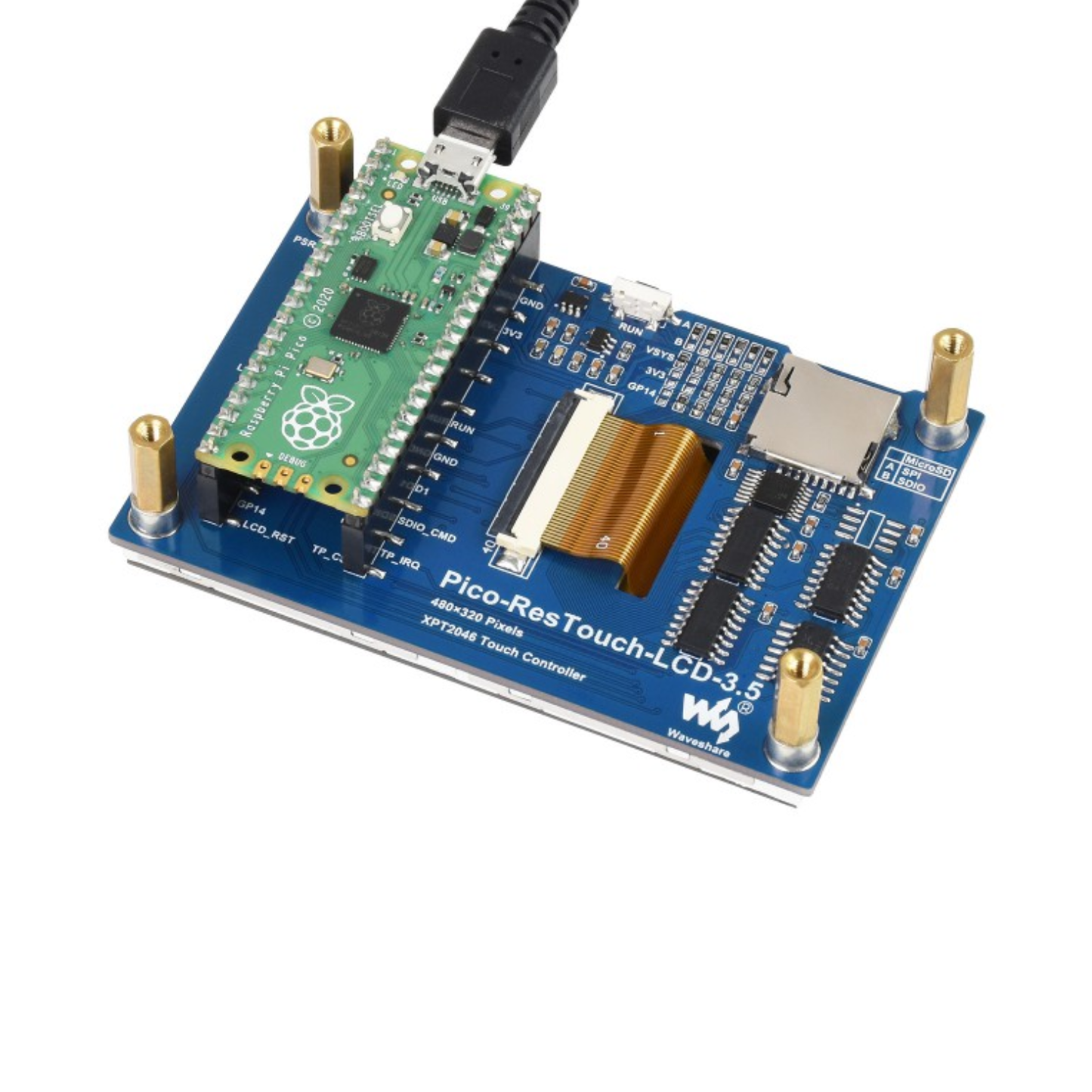 3.5 inch Touch Display Module for Raspberry Pi Pico, 65K Colors, 480×320 Pixels, SPI Interface, Resistive Touch Controller XPT2046, ILI9488 Driver, Using SPI Bus, Comes with Raspberry Pi Pico C/C++ and MicroPython Demo.