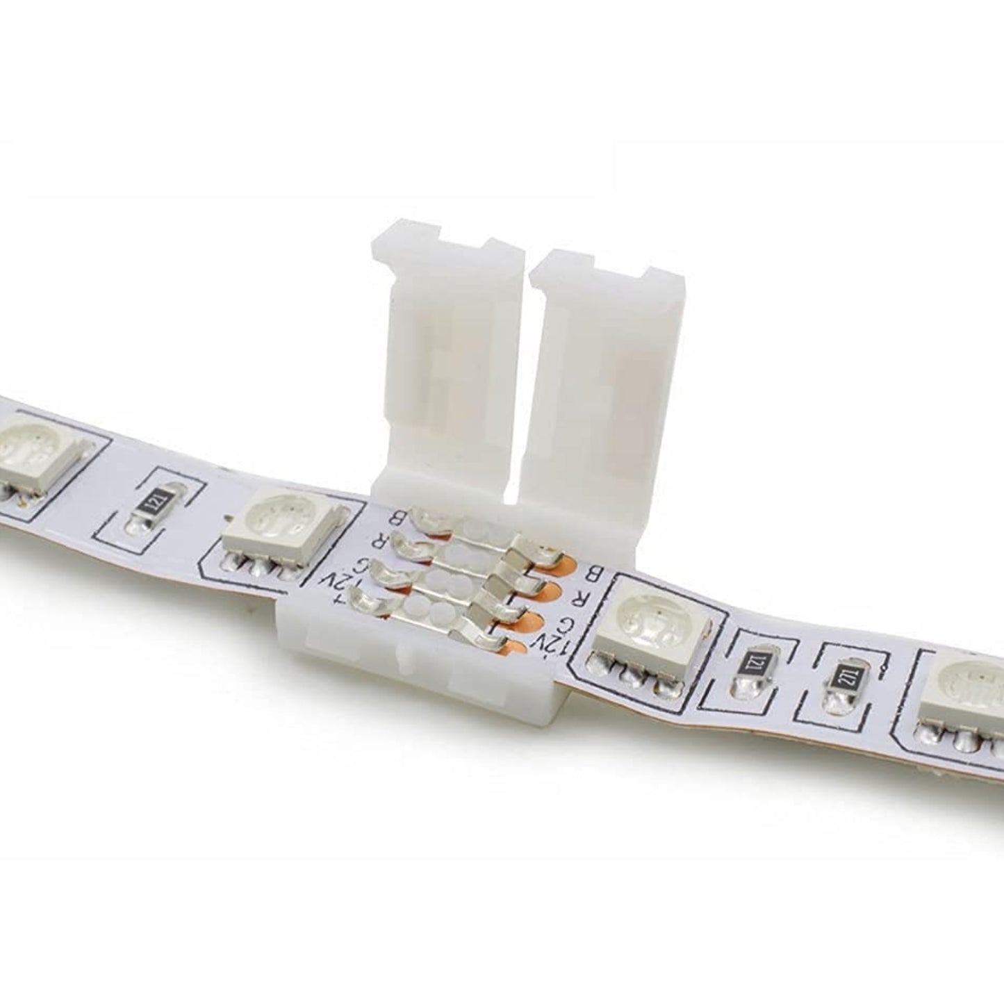 Connect between two 5050 LED strip sections to bypass/bend around a corner, curve, angle, or gap, making the connection natural and beautiful. Locks the LED light strip very tightly. 4-pin LED Light Strip Connector is better than the corner connectors because you don't waste space with the wires that connect them, the two strips literally join together right at this connector.