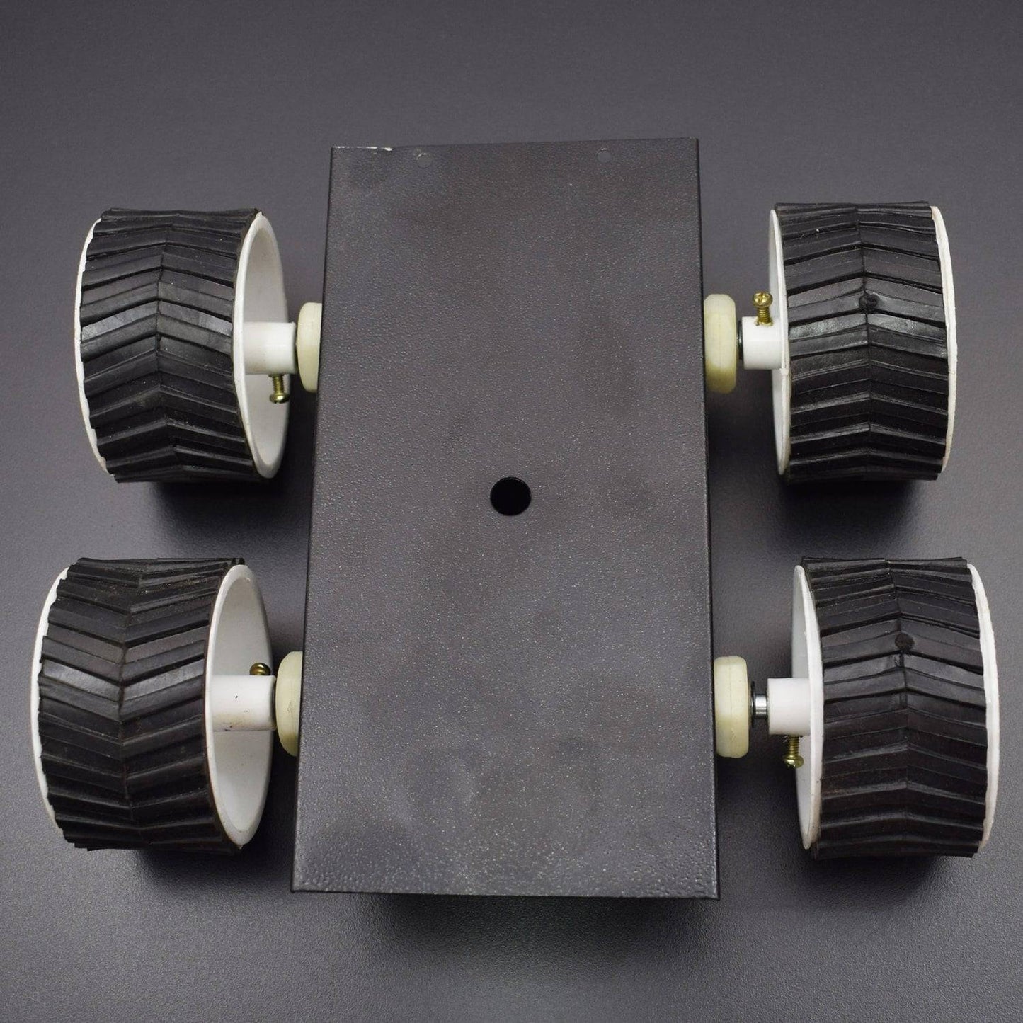 - This 4 Wheel Robotics Platfrom Will Contain Four DC Geared Motor Four White Double Screw Mount Tyre, And One Small Chasis.