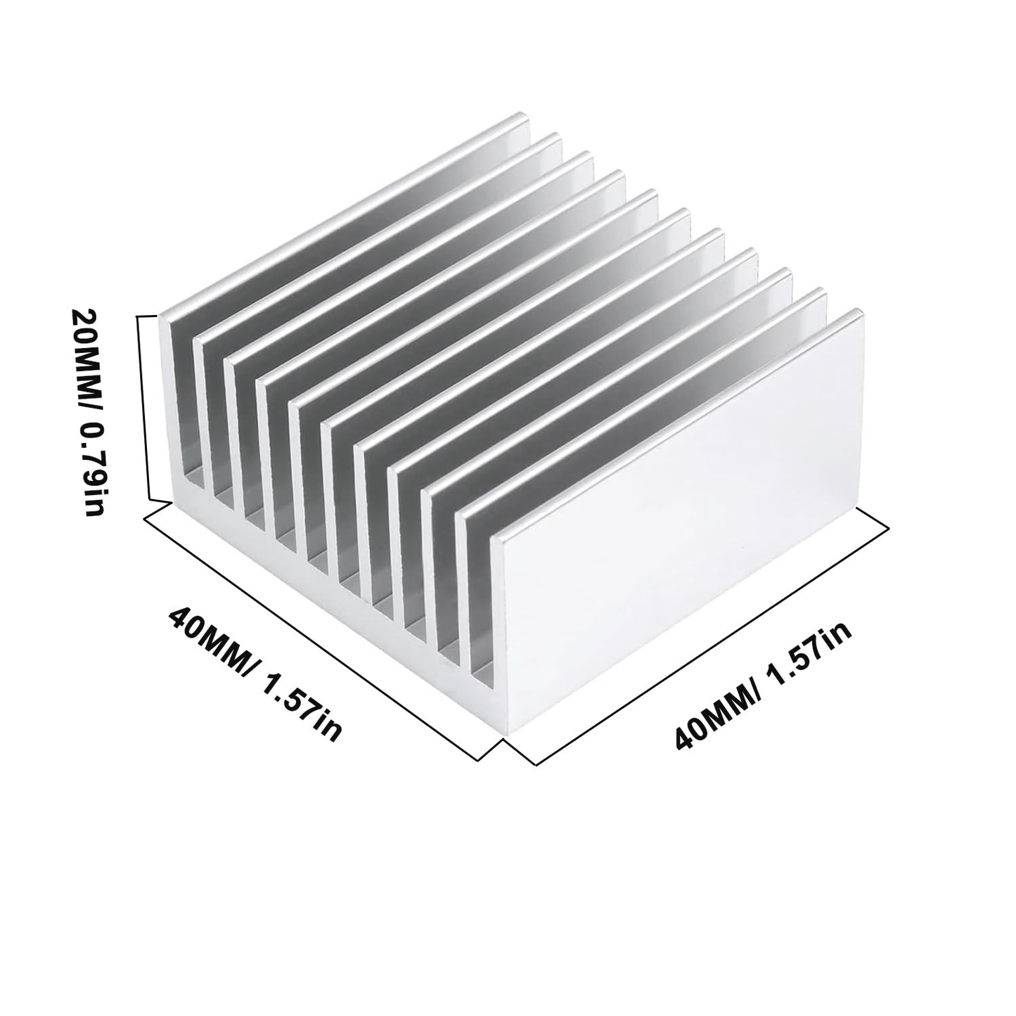 This 40x40x20mm aluminum heatsink efficiently dissipates heat generated by high-power electronic components, ensuring reliable operation and preventing damage from overheating. Its compact size makes it ideal for a variety of applications, including power amplifiers, LED modules, voltage regulators, and other devices producing significant heat. Crafted from lightweight yet highly conductive aluminum, this heatsink effectively transfers heat away from the component and into the surrounding air.