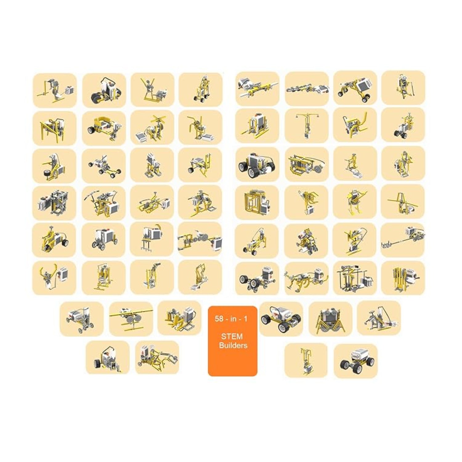 Lego Compatible Building Blocks Set comes with 420 parts and you can make 58 different models from it. All parts are compatible with major building brick blocks and are high quality. All models help your child to learn below mechanical concepts - Gear Principles - Axle Mechanism - Differential Gears - Motor principles - and Battery Power principles. We provide a paper manual book and also a mobile App for Android and Apple. Using the instructions in the App, your kid can easily make all 58 models.
