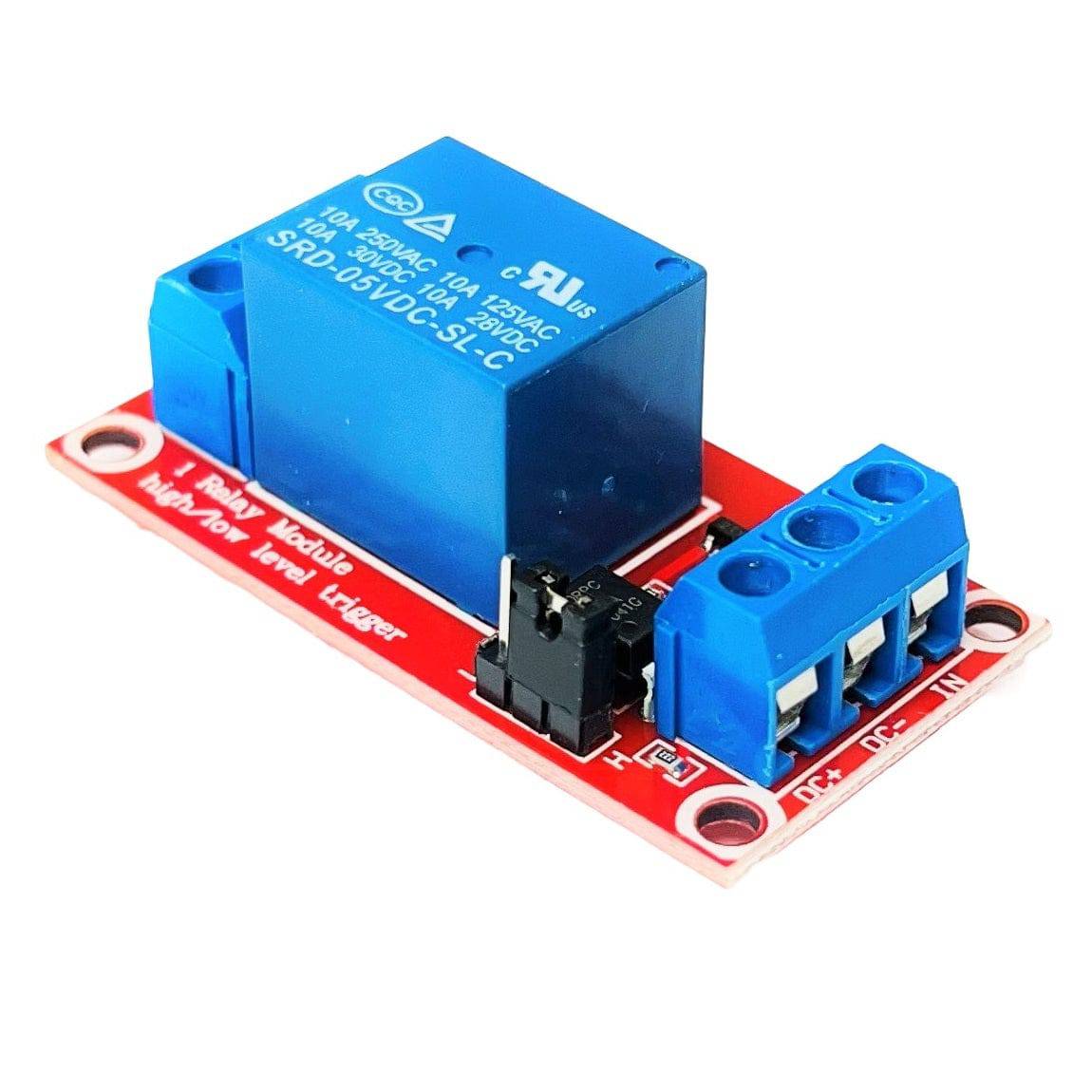 This is a High and Low Level (user configurable) 5V 1-channel relay interface board, and each channel needs a 15-20mA driver current. It can be used to control various appliances and equipment with a large current. It is equipped with high-current relays that work under AC250V 10A or DC30V 10A. It has a standard interface that can be controlled directly by the microcontroller. This module is optically isolated from the high voltage side for safety requirement and also prevent ground loop when interfacing with the microcontroller.