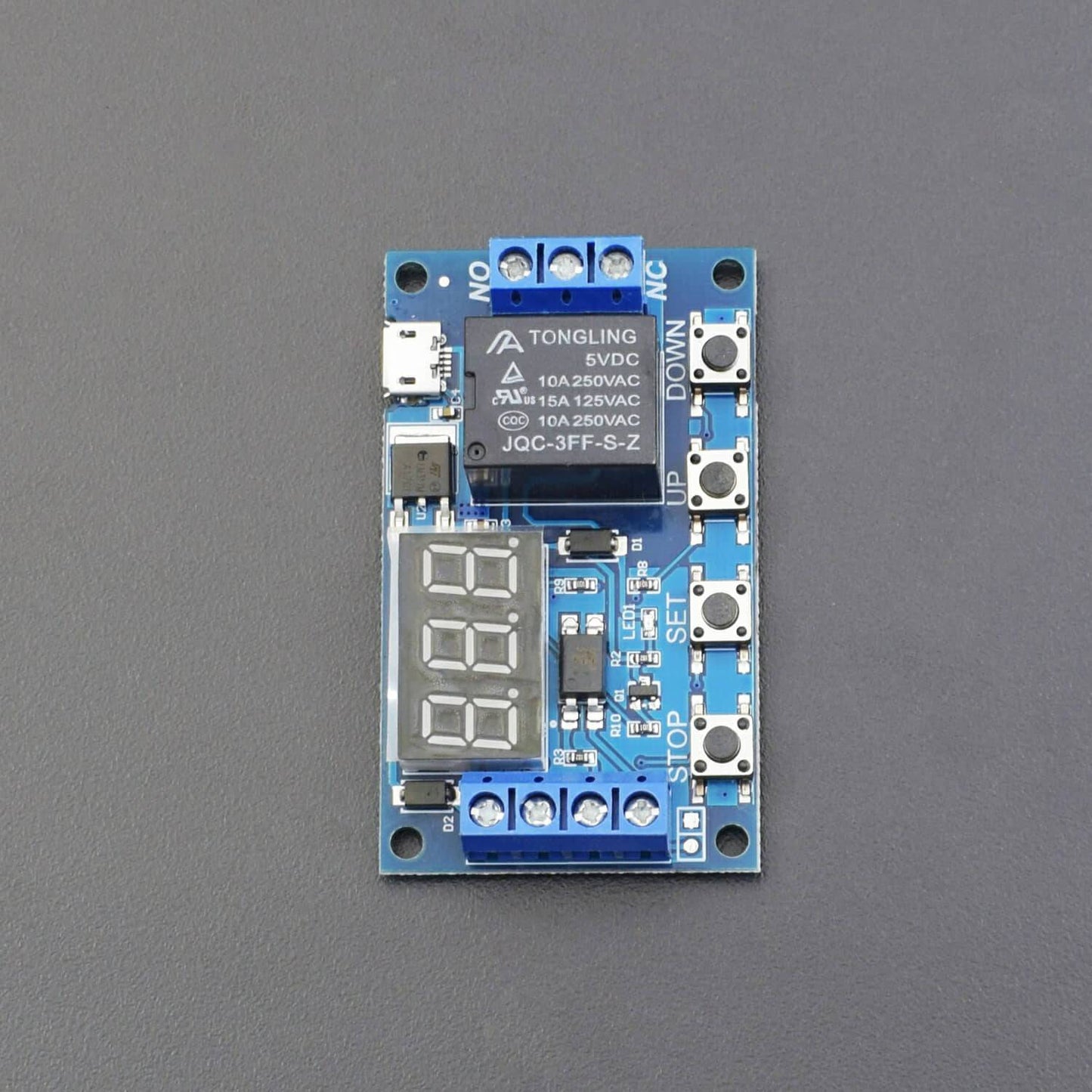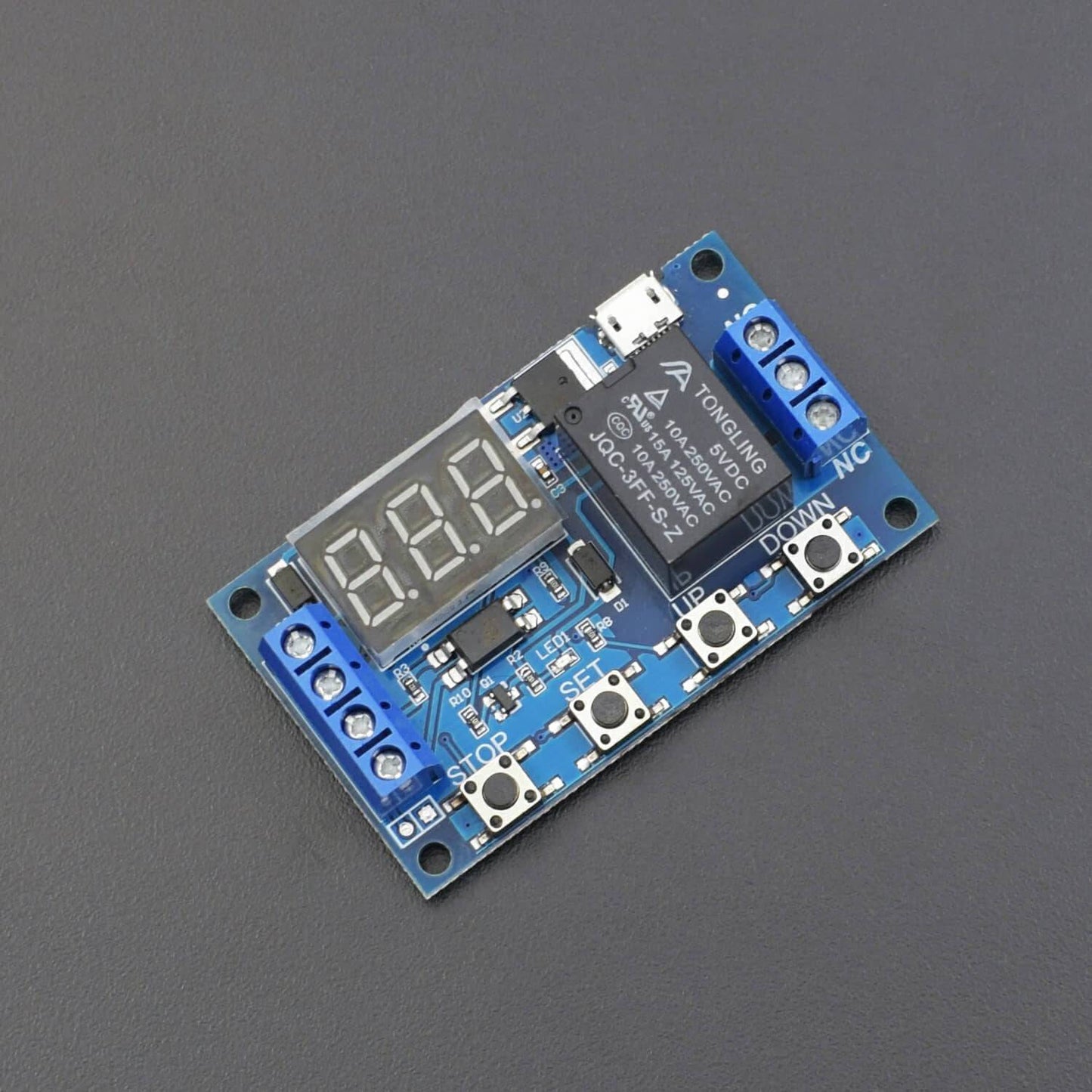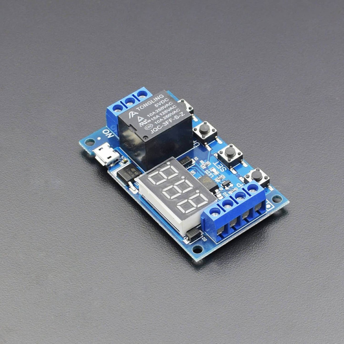 It is 6-30V 1-Channel Delay Power Relay Module with Onboard Adjustable Timing Cycle Switches with Digital LED display It is mostly used in Home Automation Delay Timer Control Switch Module Timer Controller. The Module operates at an Operating voltage range of 6-30V, also it supports a micro USB 5.0V power supply. Output capability: Can control the device within DC 30V 5A or AC 220V 5A. It can be applied to many fields as there is a wide range of applications.