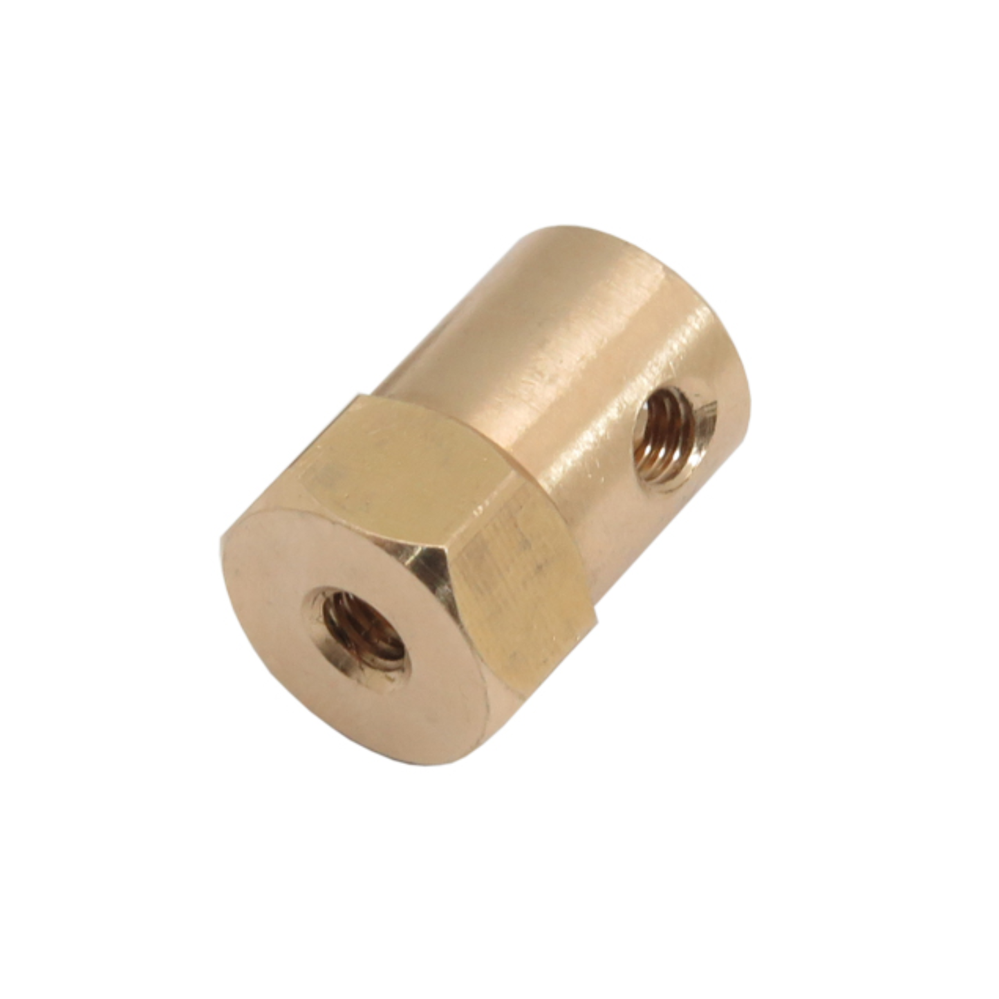 The 6mm Hex Coupling, with a compact 18mm length, is engineered for efficient power transmission in robotic applications. Constructed from high-grade brass, this coupling offers exceptional strength and longevity. Its hexagonal socket interface allows for precise wheel hub engagement, while the hollow bore ensures a secure fit with motor shafts.