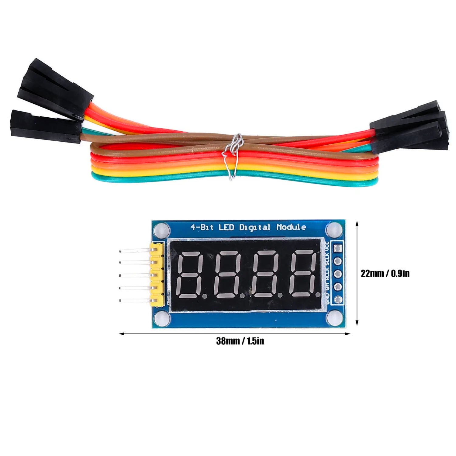 The 74HC595 4-digit 7-segment display module includes 5 pins: