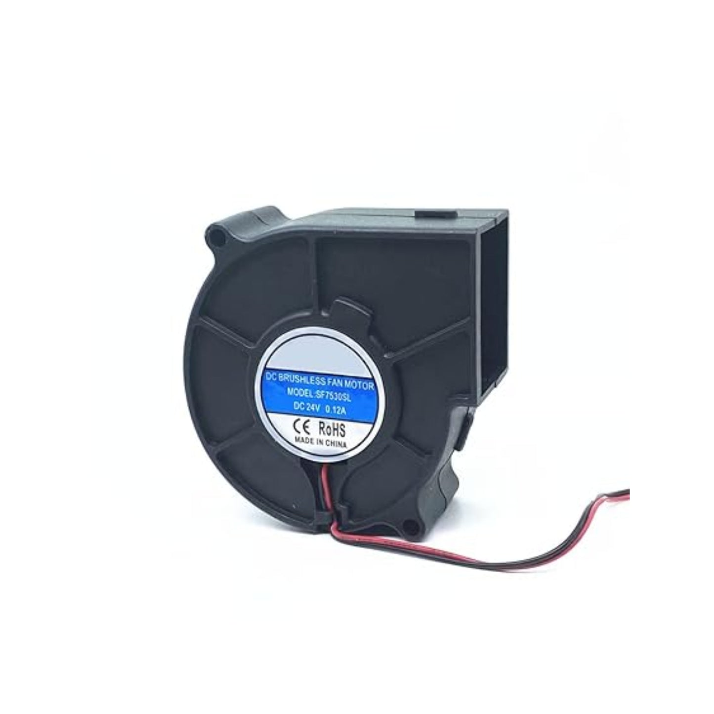 This is a two-wire DC blower fan. It is made of high-quality PBT+30% glass line +VO and a bearing with high precision making it provide long life and low noise. 7530 24V DC Blower Fan is for cooling heat sinks on hot ends, prints, or other cooling needs.